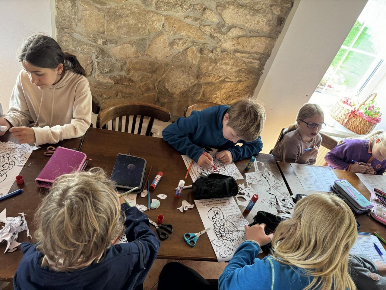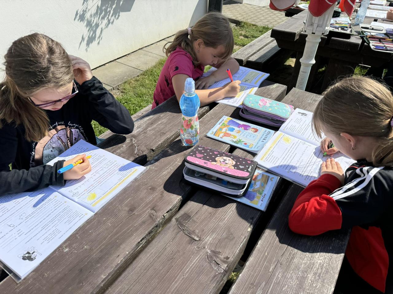 Den čtvrtý jsme započali získáváním nových vědomostí, které se na nebezpečných plavbách budou jistojistě hodit. Odměna za dopolední práci byla sladká - vynikající buchtičky s krémem, které si mnozí z nás ještě přidali. S plnými bříšky si všichni piráti odpočinuli ve svých kajutách a nabírali síly na odpolední bitvu ve vybíjené. Odpoledne nás čekal útěk z ostrova, při němž si opět poměřily síly všechny čtyři posádky. Jak to všechno dopadlo vám neprozradíme, to už necháme na vašich malých pirátech - můžeme jen napovědět, že jsme všichni zdrávi, v pořádku a snad už přežijeme i do zítřka. Rozhodně se nám bude dobře usínat - bříška máme plná pirátova šlehu a hranolek. Vyplouváme zítra v devět hodin, ukořistěné poklady najdete v kufrech a batozích. Pokud poplujeme hladce, přiblížíme se k domovským břehům kolem 10.hodiny.