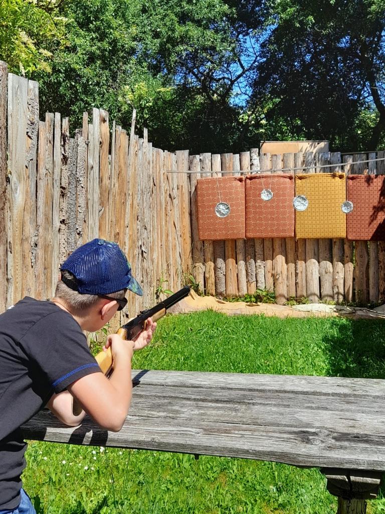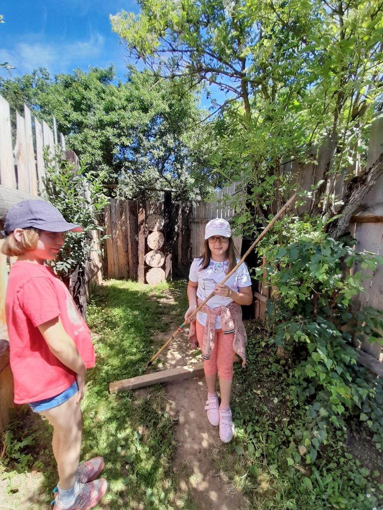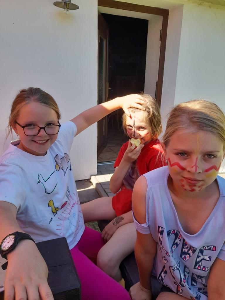 Dnešní den jsme započali pěší výpravou do indiánské vesničky, kde se děti dozvěděly zajímavosti ze života Indiánů a vyzkoušely si některé z jejich typických dovedností (práce s lasem, hod tomahawkem, střelba z pušky, lukostřelba, odívání…).
